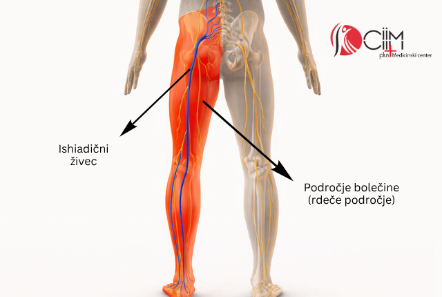 Ko pride do utesnitve tega živca, se signal bolečine ne zadržuje le na enem mestu. Namesto tega se širi vzdolž njegove poti, kar povzroča značilen občutek “sevanja” bolečine v nogo. Prav zaradi tega ljudje pogosto opisujejo, da jih ne boli le križ, ampak celotna noga. Bolečina je lahko topa, pekoča ali ostra, včasih pa jo spremljajo tudi občutki mravljinčenja ali odrevenelosti.